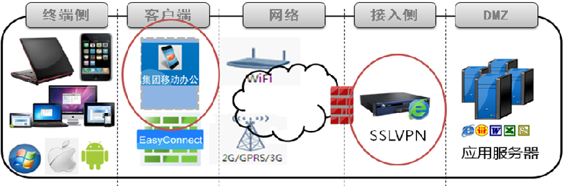 SSL VPN通過(guò)Easyconnect模塊辦公系統直接以虛擬化的形式發(fā)布出來(lái),無(wú)需任何系統開(kāi)發(fā)便可將業(yè)務(wù)系統遷移至不同平臺(IOS/Android);