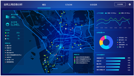 整體把握廣域網(wǎng)各分支上網(wǎng)現狀以及安全現狀,及時(shí)發(fā)現管理和安全的薄弱點(diǎn),便于制定有效的處置策略。