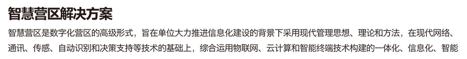 智慧營(yíng)區系統 您的位置:首頁(yè) » 解決方案 » 其他產(chǎn)品應用