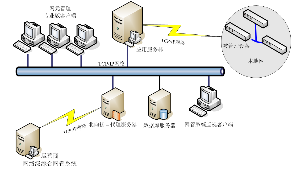 1)整個(gè)網(wǎng)管平臺采用基于C/S方式的三層體系架構,即:客戶(hù)端+應用服務(wù)器+數據庫服務(wù)器,網(wǎng)管軟件可以運行于同一臺物理計算機上,也可分布式部署到不同的物理計算機上運行,具有靈活的可伸縮性;2)統一管理多種設備和業(yè)務(wù);3)由于整個(gè)網(wǎng)管系統采用面向對象技術(shù),并運用Java語(yǔ)言開(kāi)發(fā)實(shí)現,因此具有跨平臺的特性,可在多種操作系統下運行,支持Windows和Unix平臺;4)應用服務(wù)器與設備之間采用標準SNMP協(xié)議進(jìn)行通信;5)Java界面,操作統一;6)子網(wǎng)級網(wǎng)管系統,支持強大的端到端電路管理;7)提供網(wǎng)元管理器功能,在網(wǎng)元管理器中可對指定設備進(jìn)行管理,一種設備的類(lèi)型對應一種網(wǎng)元管理器,使得網(wǎng)管系統具有極強的可擴展性;8)多種標準開(kāi)放接口:SNMP、CORBA;